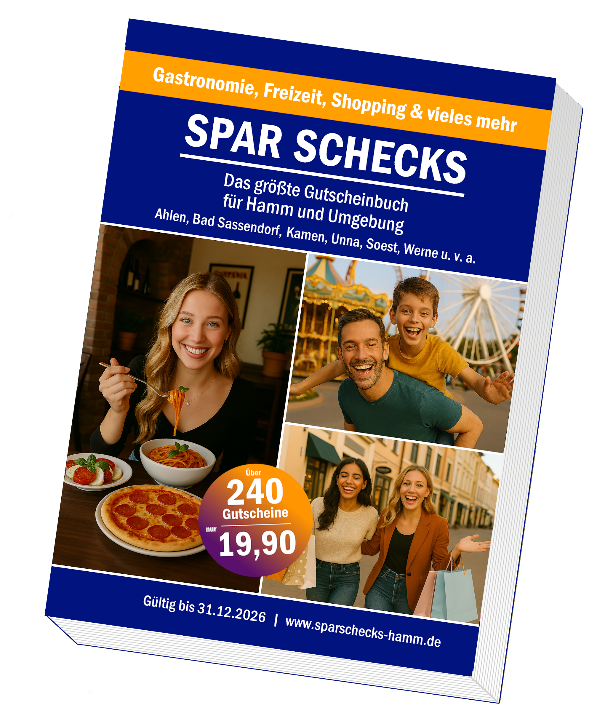 Entdecken und genießen Sie Hamm und Umgebung mit über 240 Gutscheinen von vielen bekannten und neuen Anbietern im größten Gutscheinbuch der Region, gültig bis 31.12.2026. SPAR SCHECKS bietet Ihnen